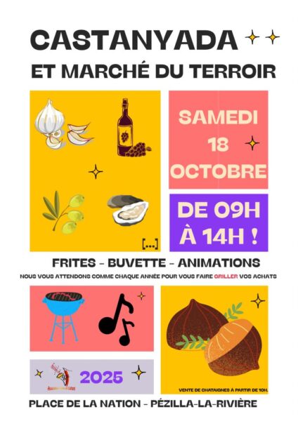 • Marché du terroir avec des produits locaux (ail, vin, huiles d’olives, huîtres, crêpes, etc.).