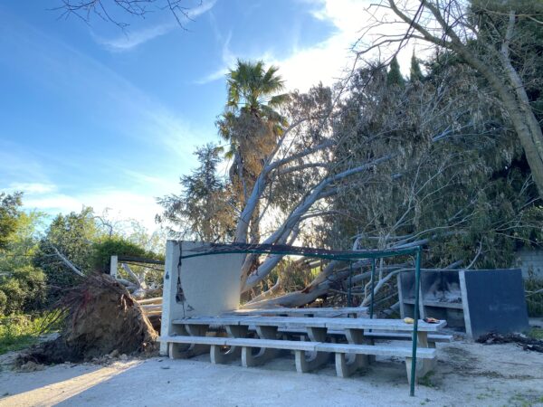 Les entreprises sont à pied d’œuvre pour déblayer les arbres. Objectif : rouvrir rapidement les espaces jeux et pétanque, puis remettre en état la zone pique-nique et grillades.