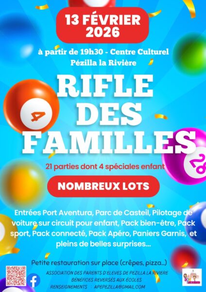 Rifle des famillesPar Mairie / 20/01/2026 le vendredi 13 février à 20h au centre culturel organisée par l’association des « Parents d’élèves » PartagezTweetezPartagezÉpingle0 Partages