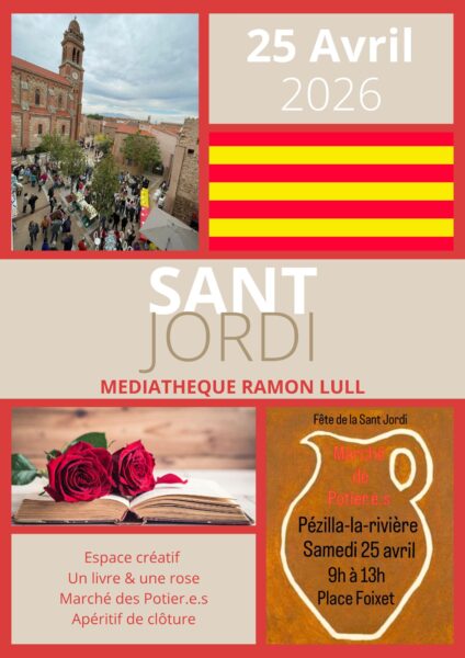 Sant Jordi et Marché des Potiers(es)Par Mairie / 01/04/2026 Samedi 25 avril 2026de 9h à 13h sur la Place du Général Foixet PartagezTweetezPartagezÉpingle0 Partages